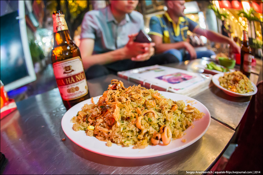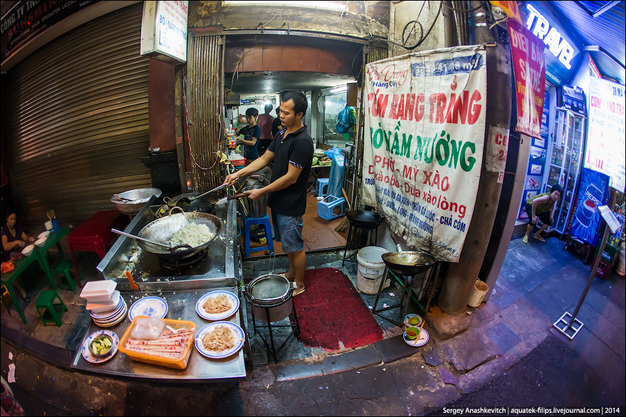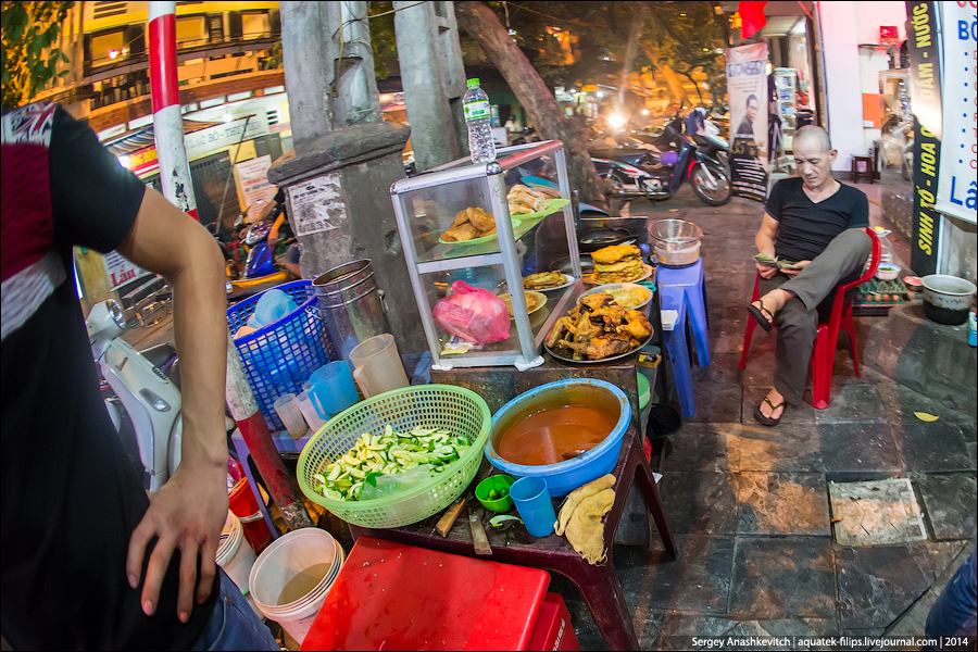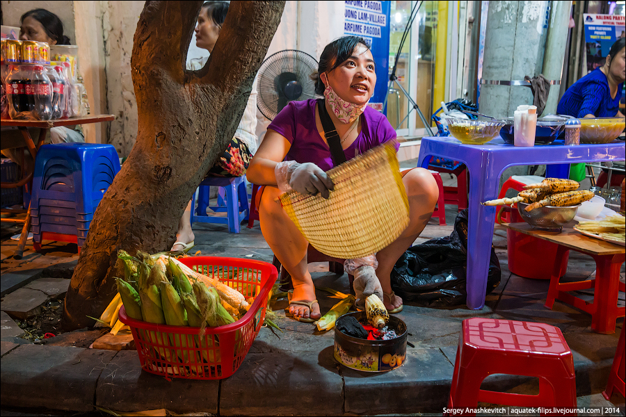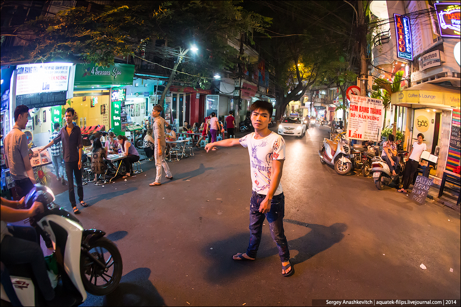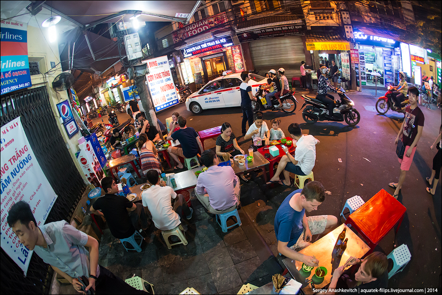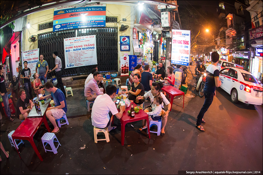 Уличных кафе так много, что кажется, будто одна половина вьетнамцев постоянно ест, а вторая постоянно эту еду готовит. Практически около каждого кафе в центре Ханоя работает зазывала. Его задача затащить посетителя именно в свое кафе. Зазывалы настойчивы и прекрасно говорят по-английски, ведь иностранные туристы лакомые клиенты для любого заведения - они не задумываясь оставляют здесь деньги за ужин, которые для них кажутся сущими копейками.