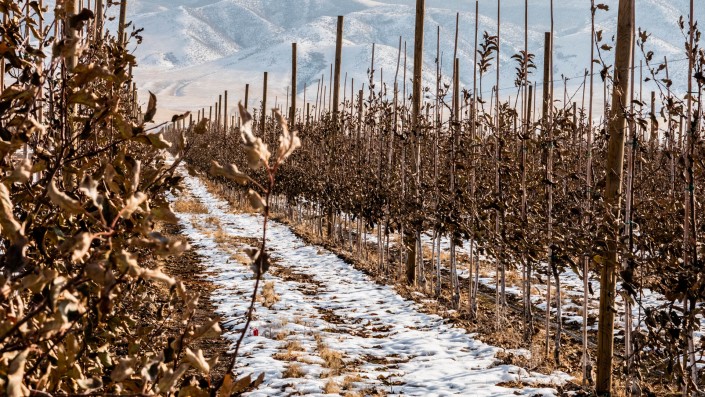 В 2014 году компания Alma Green Fields выкупила в 150 километрах от Алматы земельный участок площадью 330 гектаров. На площади 258 гектаров компания посадила яблоневый сад, еще 20 гектаров заняли черешня и слива. Всего высокоинтенсивным и полуинтенсивным методами здесь высадили 656 тысяч саженцев. На одном гектаре в среднем растет 2360 деревьев, расстояние между рядами - три метра, между деревьями - 60-80 сантиметров. Саженцы яблок семи сортов высаживались трехлетними, первый коммерческий урожай они дали в 2017 году. Этой осенью предприниматели сняли второй урожай. Отпускная цена одного килограмма яблок составляет 180 тенге. Компания отправляет фрукты по Казахстану, а также экспортирует в Россию.