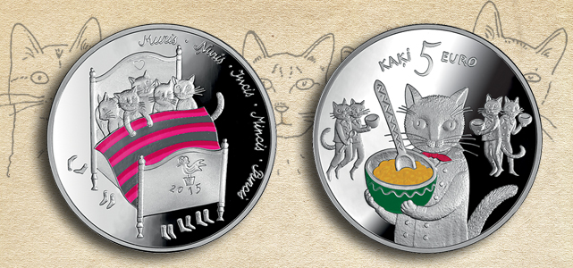 Как сообщили в банке, монета с котами создана по мотивам сказки "Пять котов" Альберта Кроненберга, известного латышского художника-графика, поэта и писателя. "Это первая коллекционная монета особой серии, посвященной самым любимым и ярким латышским сказкам", - пояснил пресс-секретарь Банка Латвии Янис Силакалнс.