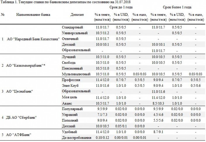По данным организации, в июне средневзвешенная ставка вознаграждения банков по привлеченным депозитам физлиц в национальной валюте составила 10 процентов (в мае - 9,9 процента), в иностранной валюте - 1,9 процента (1,8 процента).