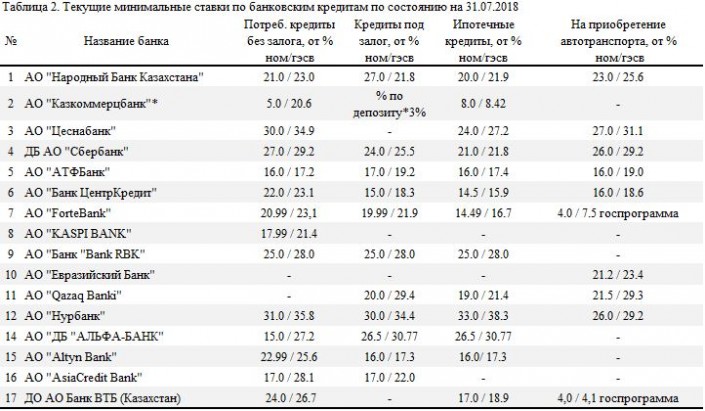"Лидерство по приросту ссудного портфеля в июне у Народного банка (+60,1 миллиарда тенге). Вместе с тем лидером по росту ссудного портфеля с начала года является Kaspi Bank (+101,5 миллиарда тенге). В июне средневзвешенная ставка вознаграждения по выданным кредитам в национальной валюте юрлицам составила 11,7 процента (в мае - 12,5 процента), физлицам - 19,1 процента (19,3 процента). Менее выраженная динамика снижения процентных ставок у физлиц обусловлена в том числе сохраняющимся повышенным кредитным риском в отношении розничного сегмента", - отметили в АФК.