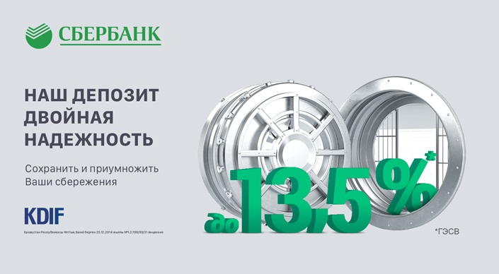 В Сбербанке особо подчеркивают, что все депозиты находятся под двойной гарантией. Первая степень защиты гарантируется самим Сбербанком, чья надежность проверена временем. Крупнейший финансовый институт в стране является примером финансовой надежности, высокого сервиса и бережного отношения к деньгам своих клиентов. С другой стороны, депозиты Сбербанка защищены государством через Казахстанский фонд гарантирования депозитов. Таким образом, депозиты Сбербанка – это настоящая гарантия защиты, сохранения и приумножения денежных средств вкладчиков.