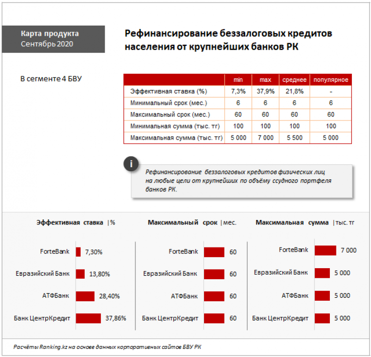 Ranking.kz опубликовал обзор рынка беззалоговых кредитов и представил лучшие предложения по рефинансированию займов физических лиц от топ-10 БВУ РК по данным на сентябрь 2020 года.