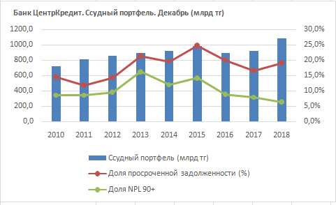 Банк ЦентрКредит, также вошедший в лидеры месячного прироста ссудного портфеля, показывает улучшение качества ссудного портфеля за счет сокращения веса наиболее токсичных кредитов NPL 90+ с 7,9 до 6,4 процента от портфеля за год. В то же время доля просроченных кредитов в целом составила 19,1 процента от портфеля займов банка, против 16,7 процента годом ранее. Сам ссудный портфель банка за год вырос на 17,7 процента.
