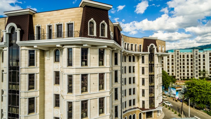 Ile de France имеет всего семь этажей в высоту, не препятствуя потокам свежего воздуха с гор, а кроме того, такое решение было принято согласно трендам в строительстве, отдающим предпочтение малоэтажной застройке и дворам закрытого типа, куда не допускаются машины. В комплексе всего 240 квартир, 60 процентов из которых уже выкуплены владельцами. Высота потолков в предчистовой отделке составляет 3,3 метра, а площадь самых скромных апартаментов начинается от 57 квадратных метров. Самая большая площадь - у четырехкомнатных апартаментов - 200 квадратов. Стоимость квадратного метра - от 795 000 тенге.