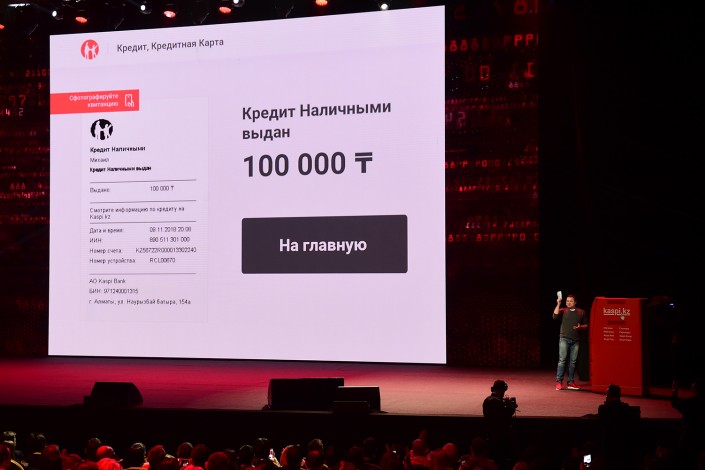 Прямо на сцене Михаил Ломтадзе продемонстрировал получение Кредита Наличными. Несколько кликов, минута на принятие решения - и Кредит Наличными одобрен в приложении Kaspi.kz.