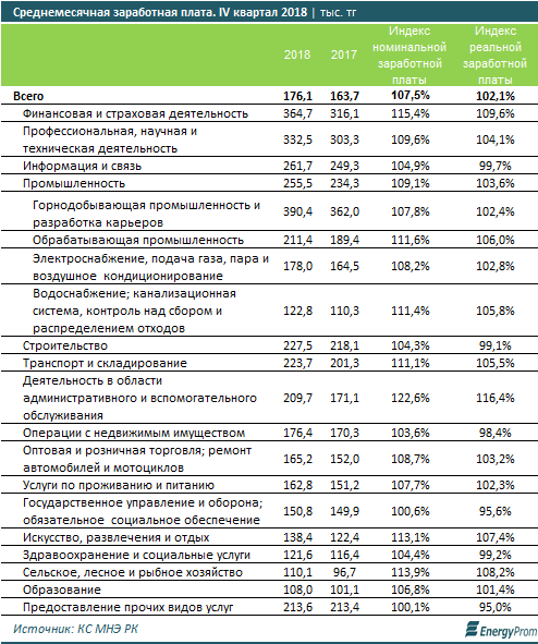 По итогам четвертого квартала 2018 года больше всех получали специалисты в сфере морского и прибрежного грузового транспорта и водного транспорта, а также в обязательном социальном страховании. Об этом сообщается в исследовании Energyprom.kz, передает Tengrinews.kz.