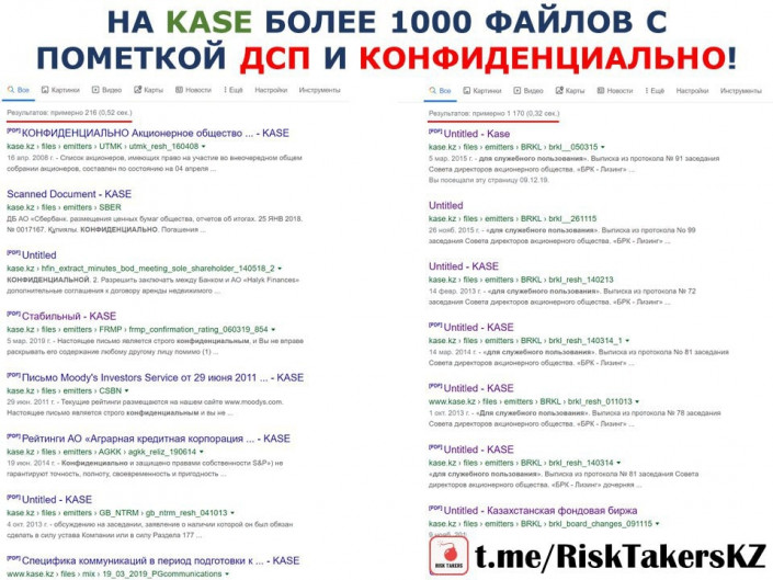 Через поисковики можно найти примерно 216 файлов с пометкой  "конфиденциально" и около 1170 файлов с пометкой "для служебного пользования" с сайта KASE. На это обратил внимание экономист Тимур Абилкасымов, передает Tengrinews.kz