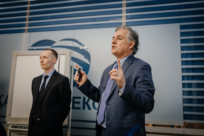 По словам Билла О’Коннора, люди должны усиливать свои рабочие качества с помощью новых технологий, или, простыми словами, использовать машины в свою пользу. Этот совет прозвучал во время тренинга эксперта из Силиконовой долины для сотрудников "Казахтелекома". Как пояснил инновационный тренер, начиная мастер-класс: "Мир сейчас на этапе, когда нужно переосмыслить, чем будет занято человечество. Уже понятно, что в будущем целый список обязанностей перейдет от людей к роботам. В этих условиях можно либо опасаться технологий за то, что они забирают у вас работу, или вы можете использовать эти машины, чтобы усилить свои качества".