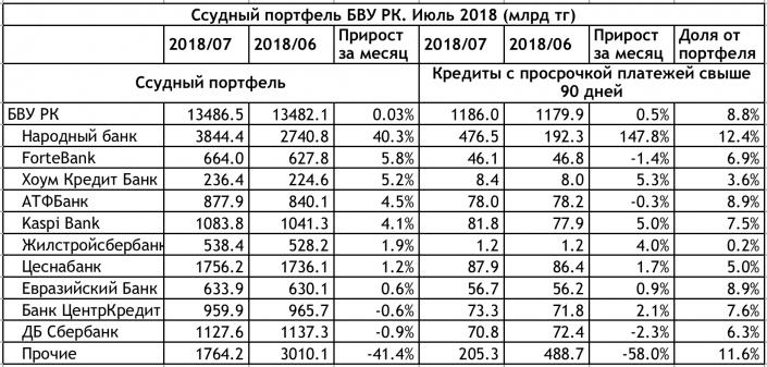 Если не брать во внимание возросший вследствие поглощения суммарный кредитный объем Народного и Казкома, то два крупных банка Казахстана увеличили свои портфели более чем на 5 процентов. Естественный прирост ForteBank составил 5,8 процента, а HomeCreditBank - 5,2 процента. Первый достиг объема ссудного портфеля в 664 миллиарда тенге, тем самым увеличив долю на кредитном рынке до 4,9 процента (+0,2 за месяц).