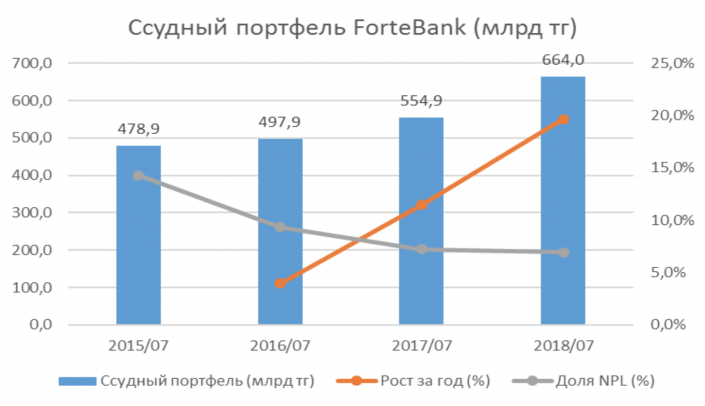 Кредитная стратегия ForteBank показывает стабильную динамику роста ссудного портфеля: +19,6 процента за минувший год (+11,5 в июле 2016-го и +4 процента годом ранее). В части NPL банк также демонстрирует успехи, сокращая долю "проблемных" займов на 1,4 процента за месяц. Если же оценивать годовую динамику, доля токсичных активов составила 6,9 процента по итогам июля, против 7,2 годом ранее и 14,3 процента в 2015 году.