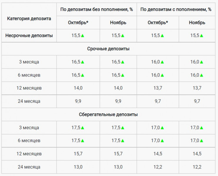 "С 27 октября 2022 года Казахстанский фонд гарантирования депозитов вслед за повышением базовой ставки Национального Банка Казахстана пересмотрел в сторону увеличения максимальные рекомендуемые ставки по несрочным депозитам, срочным и сберегательным депозитам на 3 и 6 месяцев на октябрь и ноябрь 2022 года", - говорится в сообщении.