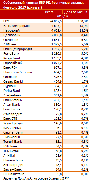 Capital Bank и Tengri Bank по объемам портфелей активов расположены на 24-м и 26-м местах соответственно. Портфель Capital Bank на конец февраля оценивается в 91,1 миллиарда тенге, доля от БВУ РК - 0,4 процента, у Tengri Bank - 65,1 миллиарда тенге и доля - 0,3 процента. После объединения Capital+Tengri по объему активов войдет в ТОП-20 БВУ, доля на рынке составит 0,6 процента, а общий объем активов достигнет 156,3 миллиарда тенге. Доля ссудного портфеля потенциально может увеличиться до 0,8 процента от БВУ РК, а портфель вкладов - до 0,5 процента.