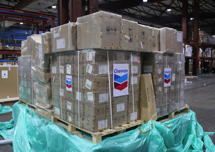 В рамках инициативы, поддержанной корпорацией "Шеврон", в Алматы прибыла первая партия лекарственных средств для лечения пациентов с COVID-19. "Шеврон" закупил и доставил эту партию лекарств в рамках гуманитарной помощи, предоставленной Министерству здравоохранения Республики Казахстан.