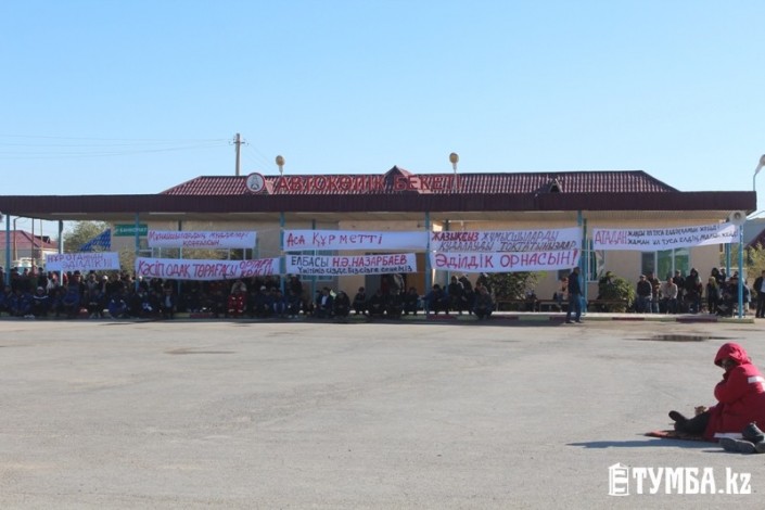 "У нас ввели единую систему труда, из-за которой наши тарифные ставки уменьшились. Сейчас мы требуем, чтобы их повысили. Кроме этого, два месяца назад мы выбрали председателя нашей профсоюзной организации - Сакена Бегалиева. Как положено, провели собрание, большим количеством голосов утвердили его кандидатуру. На том собрании присутствовало и руководство ТОО "Бургылау", юрист. А теперь в отношении нашего председателя начались гонения. В отношении него заведены два уголовных и четыре административных дела, сейчас он находится под домашним арестом. Мы требуем, чтобы в отношении него закрыли все дела и отпустили его", - говорит член профсоюзной организации ТОО "Бургылау" Иклас Исатаев.