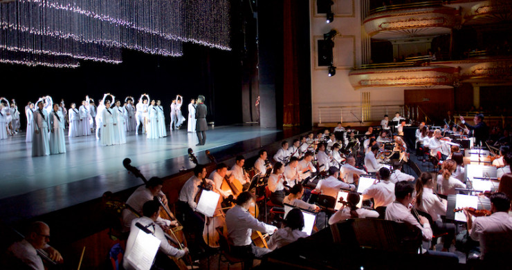 Музыкальные номера в этом балете воплощают богатейшую подборку характеров, эмоций, психологической атмосферы. Симфонический оркестр "Астана Опера" под руководством дирижера-постановщика Абзала Мухитдина уверенно справился с поставленной задачей и передал яркие краски такой знакомой и в то же время каждый раз новой музыки. Соло на рояле блестяще исполнила Долорес Умбеталиева.
