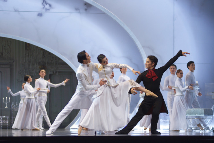 Повзрослевший одаренный Бетховен привлек внимание просвещенных боннских семейств, а блестящие фортепианные импровизации обеспечили ему свободный вход в высокие музыкальные собрания. Примером такого внимания высшего общества к персоне Бетховена в балете можно считать сцену Венского бала. Помимо абсолютно новой современной хореографии, удивило здесь и сценическое оформление. Декорации японского мастера, а также автора концепции светового дизайна Йоко Сеяма напомнили хрустальный дворец. Такое решение было принято не просто так. Прозрачный хрусталь – символ другого временного измерения, точнее, он указывает нам на то, что действие балета не принадлежит какому-то конкретному времени и месту. Наверное, поэтому хореограф именно в этой сцене вводит в спектакль главную героиню Любовь (ее наряд ярко-красного цвета как символ этого сильного чувства). Первая встреча композитора с возлюбленной происходит в момент, когда все общество застывает, не только недвижимо, но кажется, что и бездыханно, так, точно в самое сердце Бетховену попадает своими чарами Любовь.