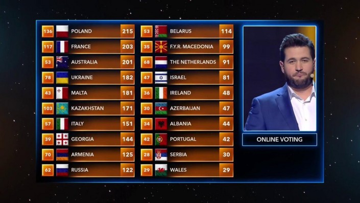 Победителем конкурса стала певица из Польши (215 баллов). Второе место заняла представительница Франции (203 балла). Третье место досталось участнице из Австралии (201 балл).