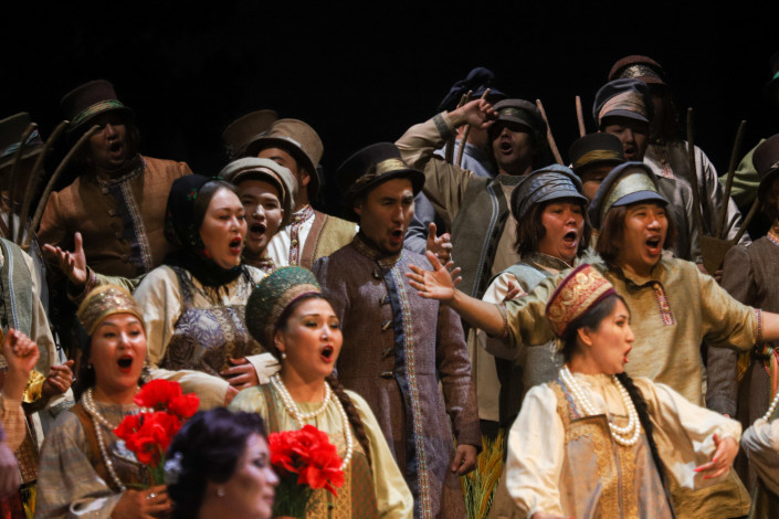 Колоссальная нагрузка легла на симфонический оркестр "Астана Опера", который достойно справился со сложной музыкой П. Чайковского. Немалая заслуга в этом Алана Бурибаева - редкого дирижера, его талантом восхищаются даже самые известные и модные на сегодняшний день маэстро. Уникальный дар музыканта заключается в способности достучаться до сердца каждого артиста симфонического оркестра и выдать слушателям волшебство музыки великого композитора. Он вел за собой в едином порыве около сотни музыкантов, заставляя зрителей испытывать глубокие эмоции. Мощные массовые хоровые сцены были не только зрелищны, но и исполнены на высоком вокальном и профессиональном уровне, а руководил хором Ержан Даутов.