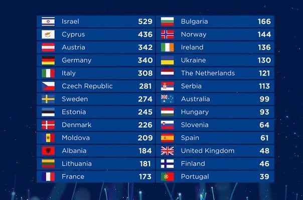 После голосования профессионального жюри израильтянка занимала пятое место. Но зрители дали ей максимальное количество баллов, за счет чего она и выиграла, опередив других участников.
