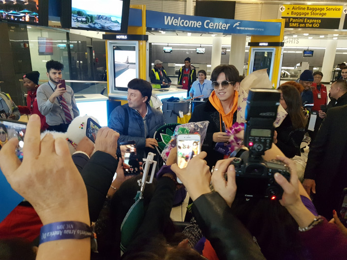 В аэропорту его ждала огромная толпа фанатов не только из городов США, но и Австралии, Японии, Мексики, России, Чили, Болгарии, Филиппин, Испании, Канады, Казахстана.