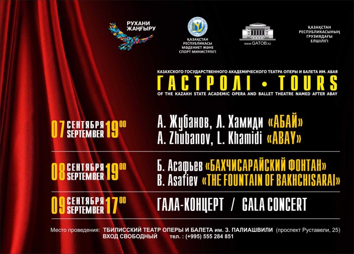 Гастроли театра пройдут на исторической сцене Грузинского театра оперы и балета имени Захария Палиашвили. Вниманию зрителей будет представлена опера Ахмета Жубанова и Латифа Хамиди "Абай".