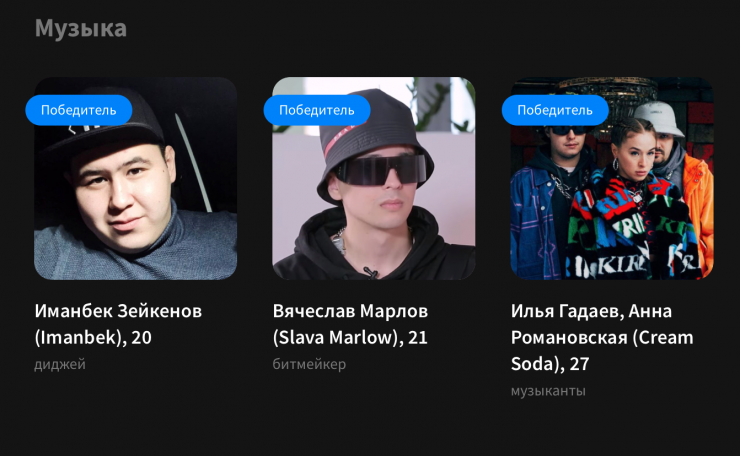 Он представлен в категории "Музыка". Кроме Иманбека, в его номинации в список вошли также Слава Марлоу и музыканты Cream Soda. Они обошли номинированных Клаву Коку, Хаски, LOVANDA, IC3PEAK, Niletto, HammAli & Navai и Дору.