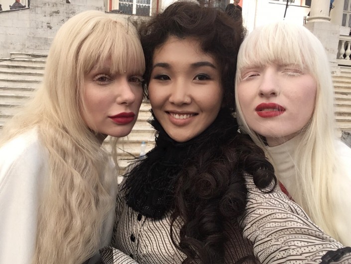 "Я познакомилась с солистами коллектива Шурой и Левой, ответила на вопросы Левы о протезе. Музыканты - интересные, простые, классные. Про съемочный день я помню, что парик был тяжелым, платье немного неудобным, зато театральный грим держался и радовал весь оставшийся день. Моя роль в клипе - небольшая, думаю, что моя героиня олицетворяет связь между прошлым и будущим - в будущем все будет кибер, в тренде будут киборги и что-то необычное, за гранью того, что есть на самом деле. Об этом свидетельствуют слова из песни: "Все в этой жизни перевернется. Привычный мир никогда не вернется". Поэтому позвали сниматься именно нас", - говорит Айман Молдабекова.