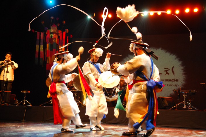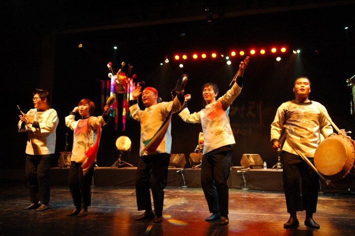Зрителям представится уникальная возможность познакомиться с экзотическими корейскими инструментами - барабаном в форме песочных часов чангу, двусторонним барабаном бук, большим металлическим гонгом чин и маленьким металлическим гонгом. Исполняемая на этих ударных инструментах традиционная крестьянская музыка в репертуаре музыкального коллектива сопровождается комбинацией шаманских ритмов и популярных песен.