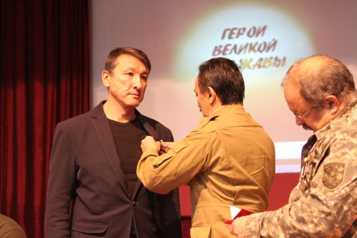 Также в ходе презентации председатель Координационного совета ветеранов войны в Афганистане Мурат Абдушукуров вручил Ильясу Аутову, другим участникам группы Motor-Roller, а также известному режиссеру Константину Харалампидису, который выступил диктором в картине и членом съемочной группы, медаль в честь 120-летия генерала Ивана Панфилова, учрежденную Советом ветеранов ВОВ Московской области. "Медаль, переданную из-под Волоколамска, мы вручили в канун празднования 75-летия массового казахстанского героизма в битве под Москвой. Братский российский народ помнит о героизме казахстанцев и их вкладе в победу. Motor-Roller уделяет большое внимание патриотическому воспитанию, исторически стоит на позиции неискажения исторических фактов, подвига 28 гвардейцев-панфиловцев в частности", - сказал Абдушукуров.