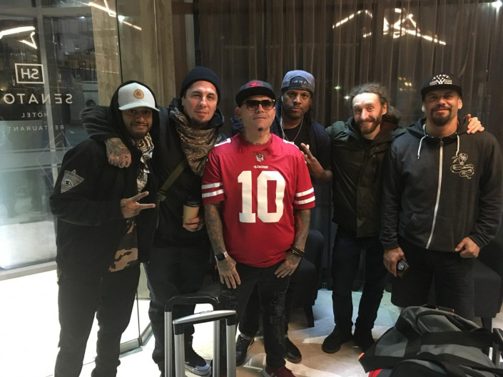 А уж когда они увидели в "Нашем баре" уголок, посвященный всем рано ушедшим музыкантам, то сразу решили сесть именно там. Солист группы Сонни был очень растроган, увидев на стене портрет своего друга - Честера Беннингтона, фронтмена культовой рок-группы Linkin Park. P.O.D. и Linkin Park дружили много лет. И сейчас на фото Честер, живой и энергичный, держится за микрофон, готовый начать петь. "Когда Linkin Park только начинали свой путь, никто не хотел брать их в тур. Мы брали. P.O.D. знали Честера долгое время и были шокированы его суицидом", - поделился гитарист группы Маркос Кьюрелл, показывая фотографии на своем телефоне.