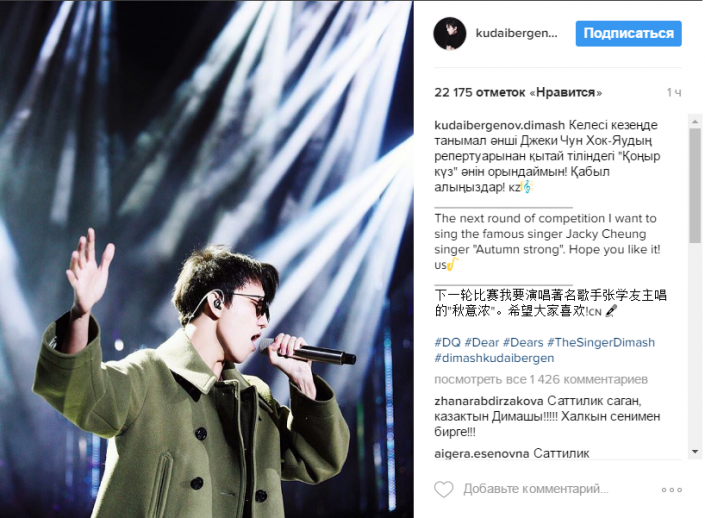 "На следующем этапе конкурса я хочу спеть знаменитую песню Джеки Чуна "Осень". Надеюсь, вам понравится", - написал Димаш в своем аккаунте в Instagram.
