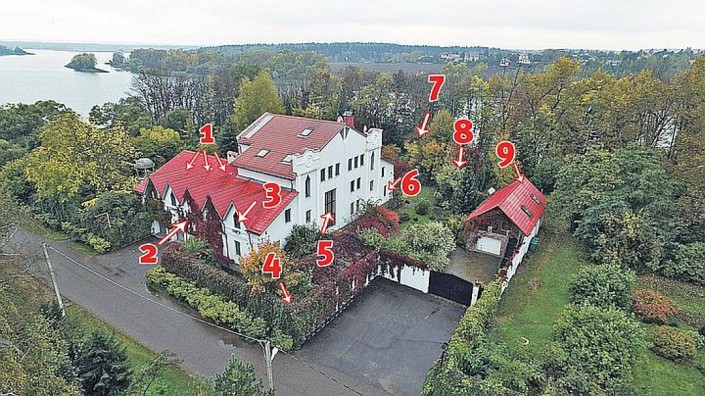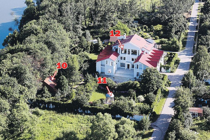 1. Комнаты для гостей. 2. Гараж на три машины. 3. Молельня. 4. Беседка. 5. Холл и столовая. 6. Спортзал. 7. Выход на частный пляж. 8. Могилы любимых собак Пугачевой. 9. Хозблок. © eg.ru