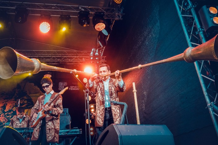 17.53 Фестиваль открыла казахстанская этно-рок-группа Aldaspan. Это уникальный коллектив, играющий на электродомбрах. Участники коллектива - лучшие домбристы консерватории: Максат Хасанов - электро-соло-домбра, Айсарбек Акияшев - электро-ритм-домбра, Шамшиддин Омаров - электро-бас-домбра и создатель группы Нуржан Тойшы, играющий на ударных. Они являются ежегодными участниками фестиваля The Spirit of Tengri с 2013 года.