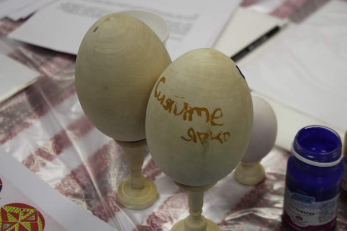 После выступления артист принял участие в мастер-классе по раскраске пасхальных яиц и оставил надпись на память детям.