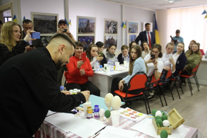 Певец приглашен на мастер-класс по раскраске пасхальных яиц, организованный в украинском культурном центре. Кроме этого, артист выступил перед детьми из детского дома и учениками столичной школы.