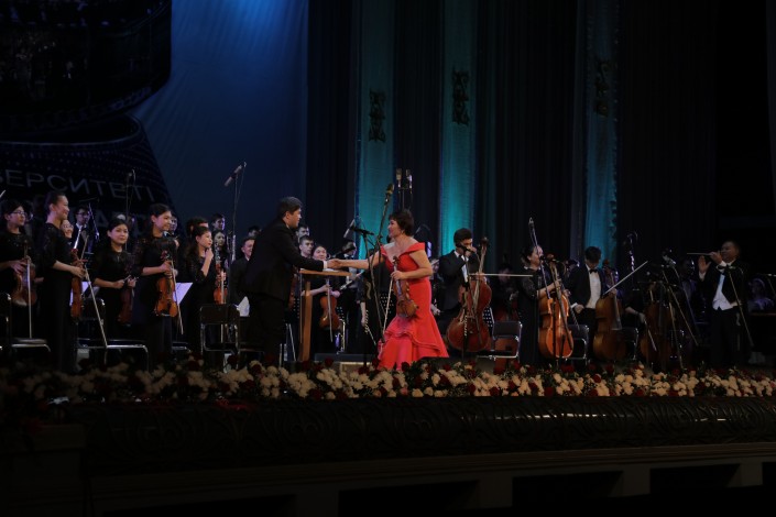 С теплотой приняли зрители знаменитый концерт для скрипки с оркестром Арама Хачатуряна в исполнении Народной артистки Казахстана, профессора Айман Мусахаджаевой. Дирижерский пульт возглавил выпускник алматинской консерватории имени Курмангазы Айдар Торыбаев - главный дирижер Львовского симфонического оркестра (Украина).