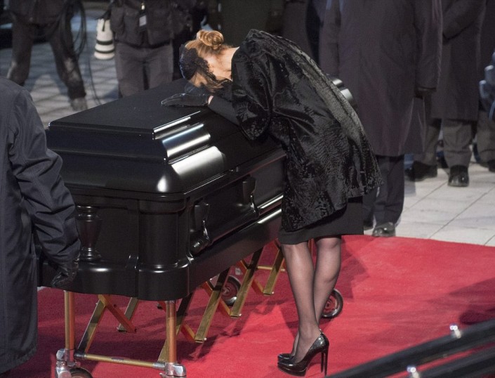Почтить память талантливого продюсера пришли тысячи человек. Они простояли несколько часов на холоде, чтобы попасть внутрь базилики и выразить свои соболезнования певице. Для тех, кто не смог лично присутствовать на панихиде, была организована прямая трансляция этого грустного мероприятия.