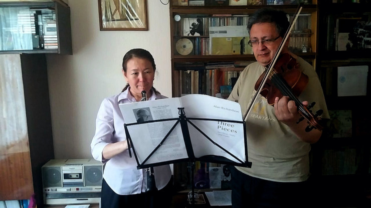 "Из-за вынужденного карантина наша жизнь не остановилась, мы продолжаем дома учить партии из текущего репертуара и не теряем надежды в мае сыграть Нурлану альтовое соло из "Коппелии", а Айман - гобойное соло из "Лебединого озера". В этих двух балетах очень важны сольные партии альта и гобоя. Учим новые произведения, тем более у нас на май был запланирован квартетный концерт, и мы все очень надеемся, что он состоится в стенах нашего театра. Параллельно занимаемся со своими детьми, которые тоже скрипачи, то есть готовим будущую смену для нашего оркестра"