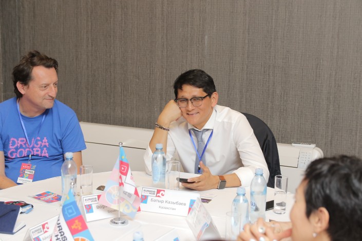За круглым столом собрались представители музыкального сообщества Германии, Кореи, Кыргызстана, Марокко, Польши, Словении, Узбекистана, Франции, Швеции и других стран. Казахстан на конференции представили генеральный директор медиахолдинга Alash Media Group Батыр Казыбаев, генеральный директор радиостанций Tengri FM и Жулдыз FM Мадина Уморбекова и генеральный продюсер фестиваля The Spirit of Eurasia Жан Кастеев.