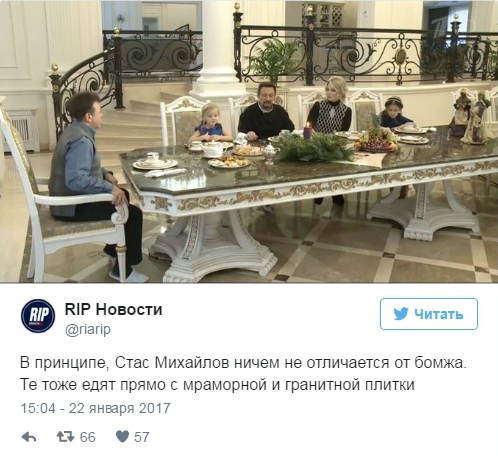 Комментаторов, пишет Lenta.ru, поразило излишне, по их мнению, роскошное и вычурное убранство жилища знаменитости. Михайлов с женой и детьми принял Кизякова в огромном обеденном зале с мраморным столом, причем ведущему выдали одноразовые белые тапочки.
