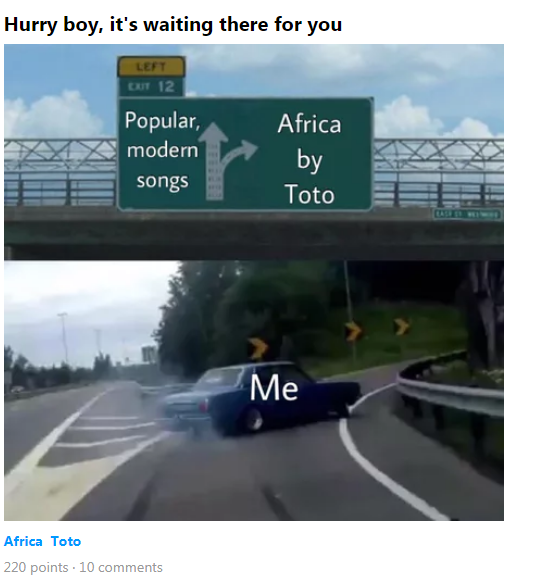 Alexa (электронный персональный помощник - прим. автора), сыграй Africa - Toto", - говорится в описании мема.