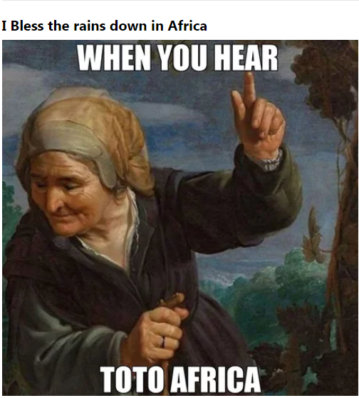 В других мемах пользователи "благословляют дожди в Африке" (слова из песни).