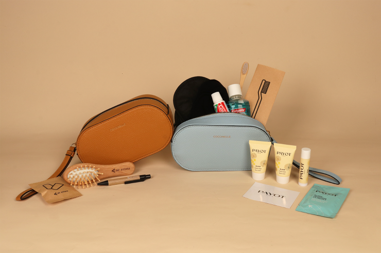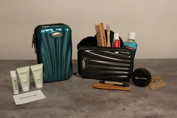 Этими дорожными наборами пассажиры могут воспользоваться как на борту, так и забрать их с собой, что станет приятным напоминанием о путешествии. В новой линейке дорожных наборов для бизнес-класса представлены два известных бренда: SAMSONITE — для мужчин и COCCINELLE — для женщин. Специально разработанный комплект дорожных предметов выдается бесплатно на всех международных рейсах маршрутной сети Air Astana продолжительностью более трех часов.