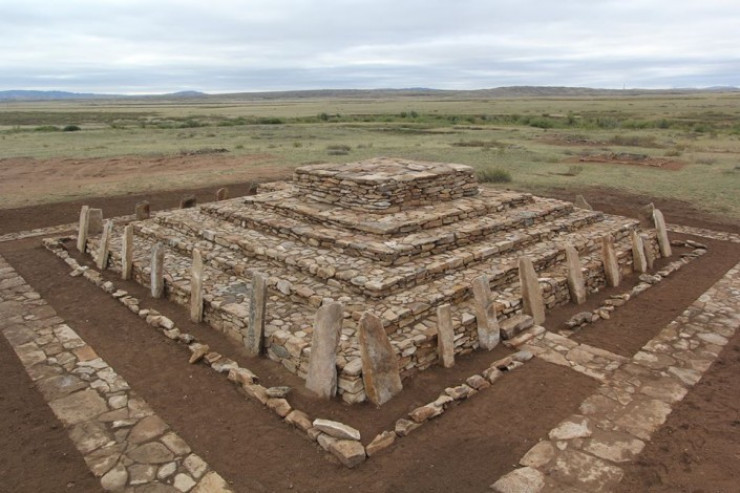 Углы пятиярусной пирамиды направлены на четыре стороны света. В высоту она порядка двух метров, длина и ширина идентичны - 15 метров. Находку карагандинских археологов назвали сенсационной.
