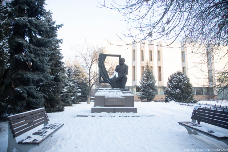 Интересный факт. В его сквере в 1967 году был установлен бюст драматурга Мухтара Ауэзова. Скульптором является Тулеген Досмагамбетов. Двухтомный роман Мухтара Ауэзова "Путь Абая" вошел в "Библиотеку всемирной литературы". Фильм по его рассказу "Лютый" номинировался от СССР на премию "Оскар".
