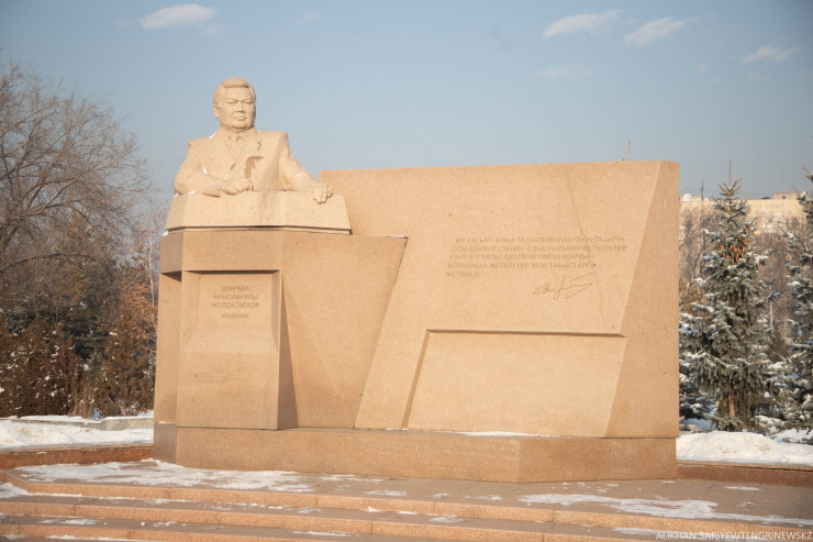 Тут же неподалеку можно найти бюст Абылай хана. Он находится на территории Казахского университета международных отношений и мировых языков, который назван в честь казахского хана. К слову, еще один памятник исторической личности находится на вокзале Алматы-2.