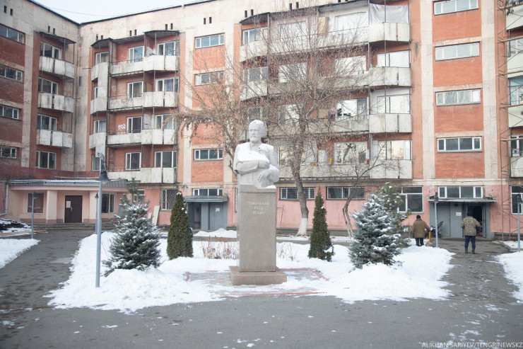 Дальше мы советуем просто прогуляться по проспекту Абая в сторону улицы Манаса. Здесь в 2017 году открыли памятник русскому композитору Петру Чайковскому. Бюст находится на постаменте во дворе Музыкального колледжа имени Чайковского. Скульптором является Еркин Макулбаев - преподаватель Алматинского колледжа декоративно-прикладного искусства имени Орала Тансыкбаева.