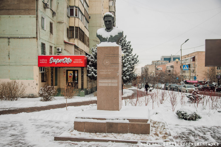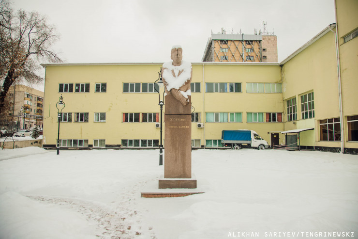 Не торопимся покидать это место. На пересечении Карасай батыра с Сейфуллина стоит памятник-бюст революционеру и писателю Сабыру Шарипову. Он был установлен в 1980 году, скульптором является Павел Шорохов. Сабыр Шарипов являлся одним из борцов за установление советской власти в Казахстане, в своих произведениях показывал дореволюционную жизнь, призывал к переходу к оседлости, описывал классовую борьбу. Также он вел деятельность в Иране по вопросам внешней торговли, писал о жизни советских эмигрантов в этой стране.