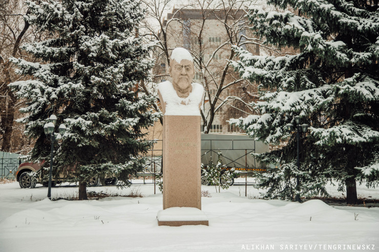 Теперь можно пойти дальше. Для этого надо подняться до улицы Жамбыла. На пересечении с улицей Байтурсынова находится сквер имени Ахмета Байтурсынова, просветителя, которого помнят как "Ұлт ұстазы"("Учитель нации"). Ахмет Байтурсынов внес большой вклад в развитие казахской литературы и письменности, провел работу по собиранию и изданию образцов казахского народного творчества, создавал учебники для обучения казахскому. В самом сквере установлена памятная табличка Ахмету Байтурсынову, а напротив сквера по адресу Байтурсынова, 60 находится его дом-музей и бюст.